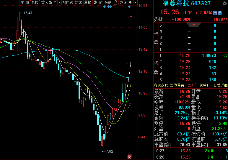 3月5日,福蓉科技涨停,截至发稿,股价报15.26元,已连收4个涨停板,成交金额超3亿元。