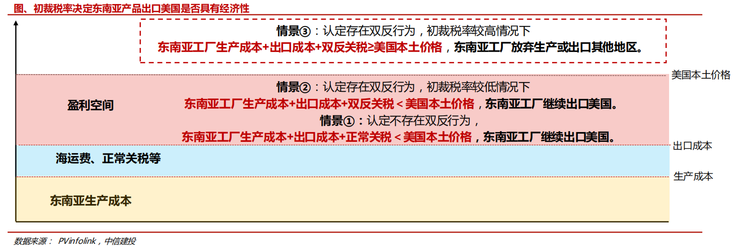 核心是初步裁定的关税税率。若裁定税率较高则东南亚的电池组件出口美国都将受到一定阻碍,若裁定税率较低,由于美国市场高溢价东南亚产品出口仍有经济性。另外,在初裁结果发布至终裁结果落地的时间段内,需要重点观察出口至美国的组件产品是否具有关税追溯的可能。