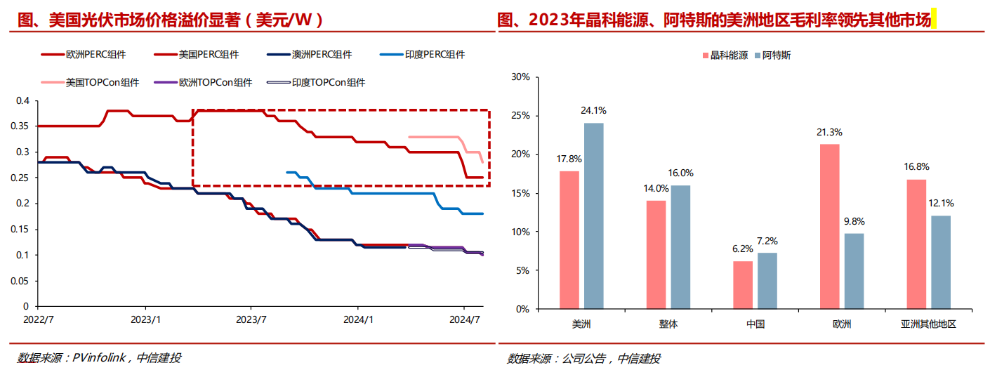 中信建投表示,由于美国本土电池供给有限,海外电池仍有望贡献超额利润,看好布局领先的电池组件企业,建议关注全球组件龙头晶澳科技(002459.SZ)、隆基绿能(601012.SH)、阿特斯(688472.SH)、横店东磁(002056.SZ),以及TOPCon电池龙头钧达股份(002865.SZ),硅片龙头TCL中环(002129.SZ)等。