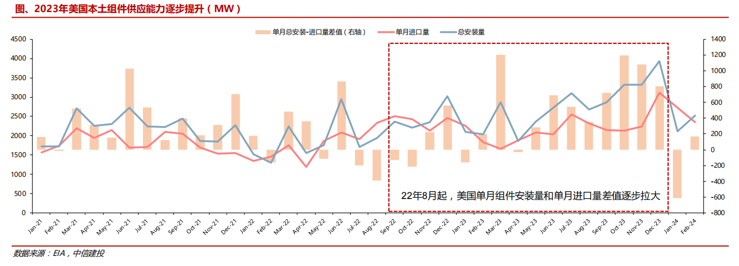 同时由于美国对使用本土制造的组件有额外10%的ITC税收抵免,因此美国厂商会优先使用本土组件产品,第二选择才是进口组件。