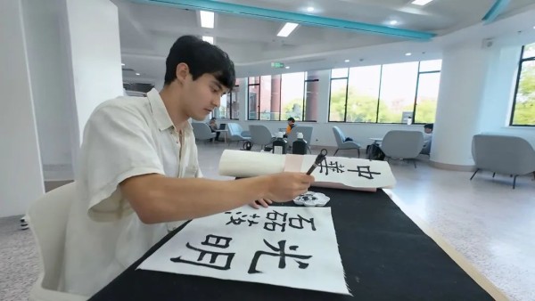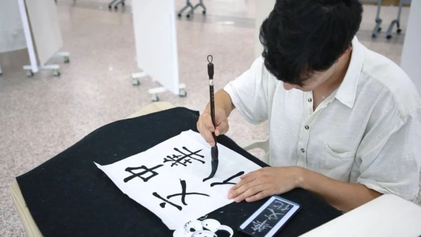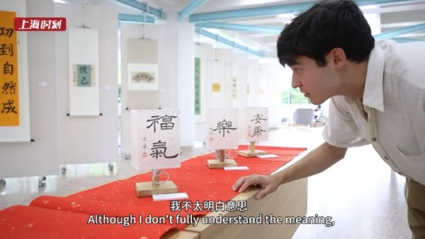 “汉字特别有意思。”上海交通大学人文学院2023级汉语进修生戴光磊赞叹,“每当提笔写字时,我觉得心会自然而然地静下来,这过程很享受。”写书法对零基础的外国朋友来说难不难?方块字在这个年轻人眼中又有着怎样的意义?醉心于一笔一划的戴光磊通过书法作品打开了一个全新的世界。