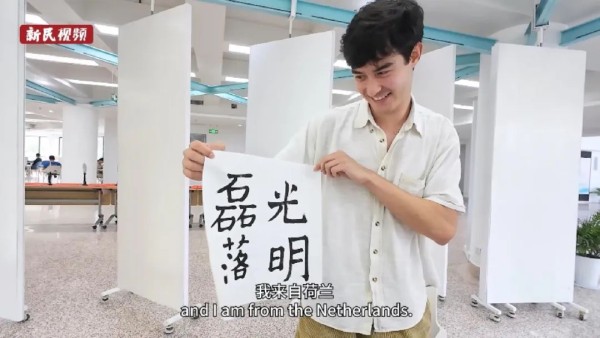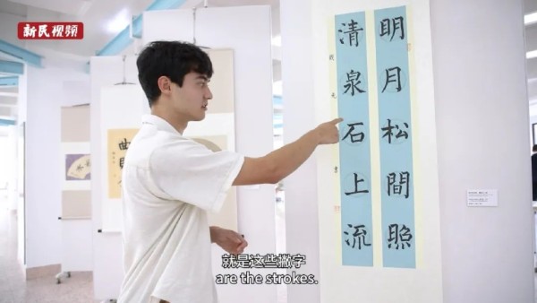 站在自己书写的唐诗前,他侃侃而谈“意境美”:“这是王维写的,‘明月松间照,清泉石上流’,是简单的画面,读完之后安静的氛围出现在我眼前。诗就是画,画里有明月、有松树、有泉水、有石头。”通过日复一日的练习书法,戴光磊不光写字功底有了提升,对于中文语义,特别是诗词歌赋的赏析能力也有了质的提升。通过书写汉字,这个荷兰小伙在探寻中华文化时获得了最可靠的抓手。