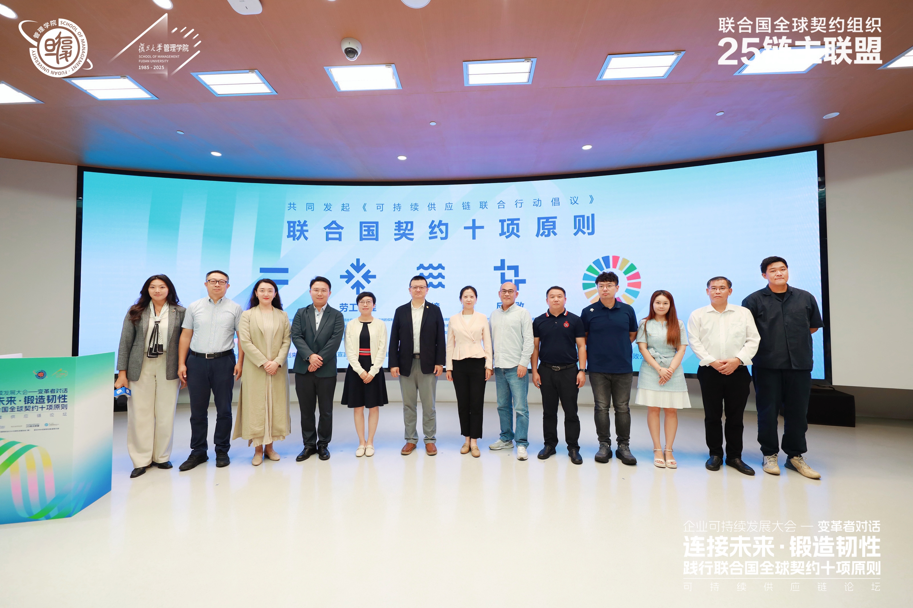 论坛现场举行了《可持续供应链联合行动倡议》发起仪式,蓝景科技、东鹏控股、固德威、江苏广信等企业作为承诺方率先响应,联合国全球契约组织在华联络办公室、复旦大学管理学院、第一财经可持续发展研究中心担任见证方,OATLY、宝山钢铁、金发科技等企业提供支持。该倡议呼吁所有供应链伙伴将联合国全球契约十项原则全面融入企业战略与运营,构建可持续、负责任的供应链体系。