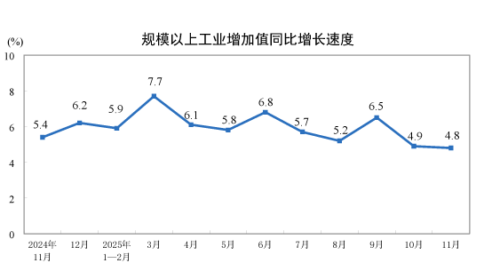 第一财经首席调研结果显示,2025年12月工业增加值同比增速预测均值为4.9%,略高于上月4.8%的公布数据。