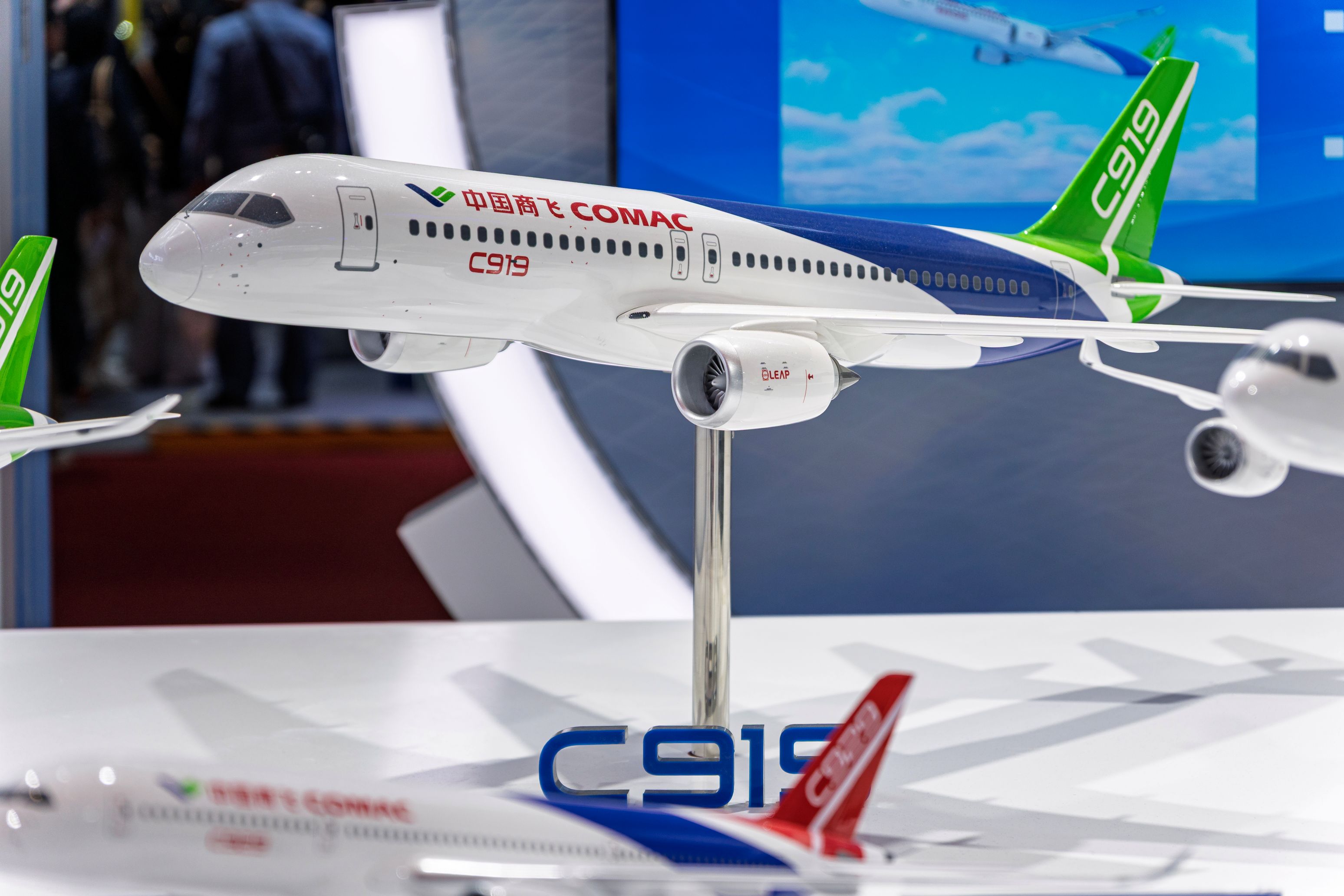 2025年11月8日,上海,第八届进博会国家馆中国展区,中国商飞展示多种机型。(视觉中国图)
