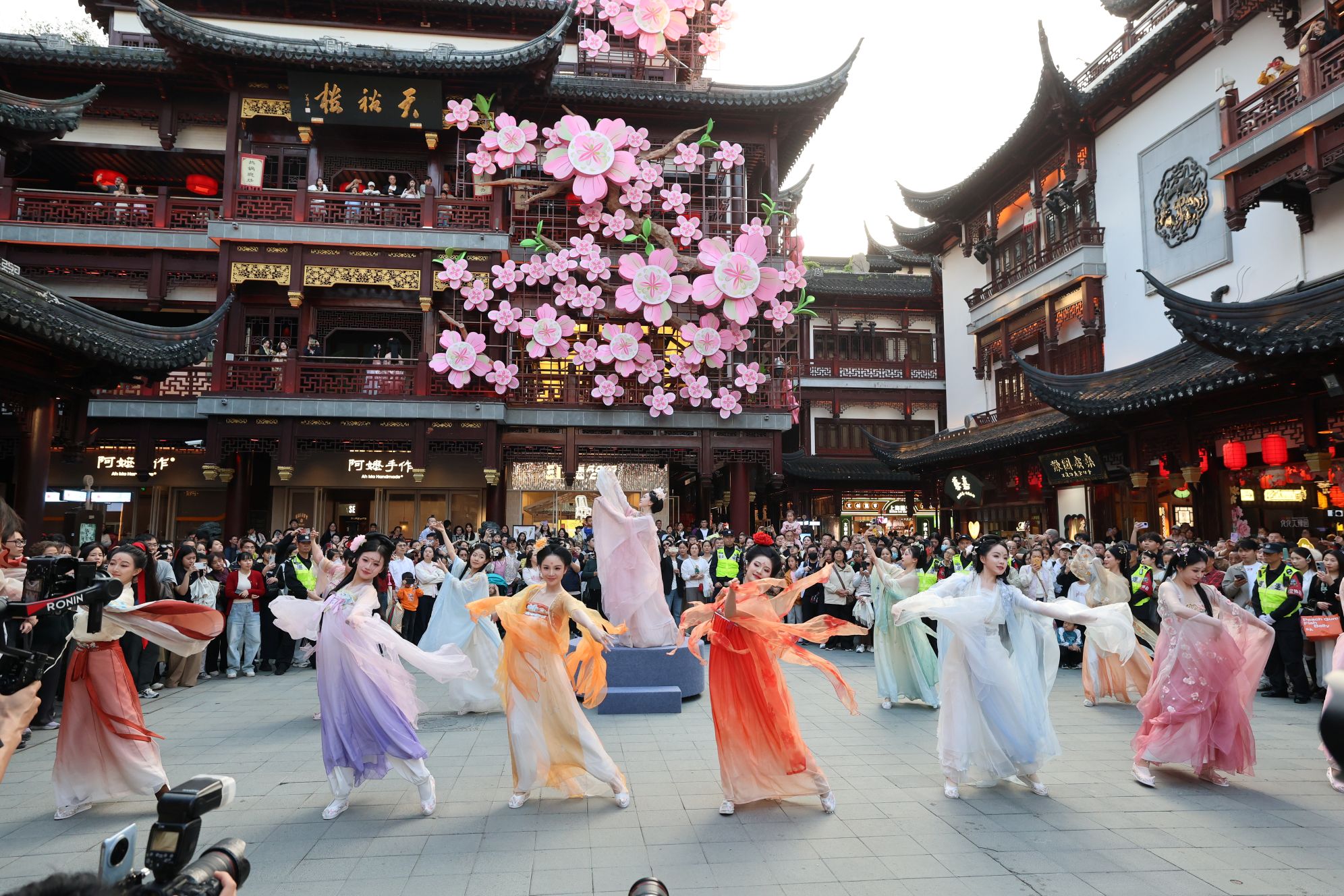 2026年4月18日,上海,2026上海国际花卉节开幕。本次花卉节以花为媒,精心打造古城公园、豫园商城、BFC“三大花园”,以及福佑路、方浜中路、枫泾路“三大花路”,将烟火市集、文化演艺与春日消费无缝交织。图为豫园商城。(视觉中国图)