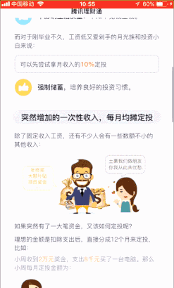 此外,为了帮助没有计划的工薪族做理财规划,腾讯还联合金融机构推出“爱定投”,其操作便捷、产品丰富,可定时定额自动买入、不再会出现忘记操作,损失收益的懊悔。此外,爱定投可灵活赎回,以应不时之需。总之,管住工资、摆脱月光,日积月累,职场中人才能有足够的资金,为事业的飞跃提供坚实的基础与自信的勇气。