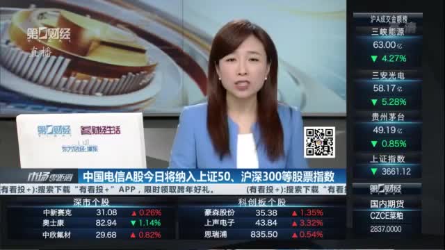 中国电信A股今日将纳入上证50、沪深300等股票指数
