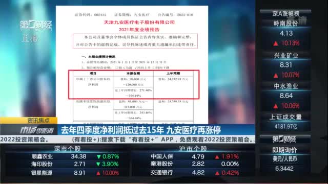 去年四季度净利润抵过去15年 九安医疗再涨停