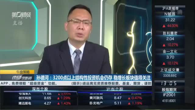 孙德河:3200点以上结构性投资机会仍存 稳增长板块值得关注