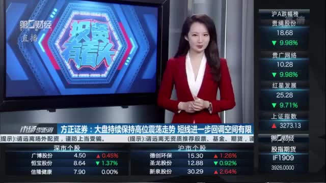 方正证券:大盘持续保持高位震荡走势 短线进一步回调空间有限|有看投+