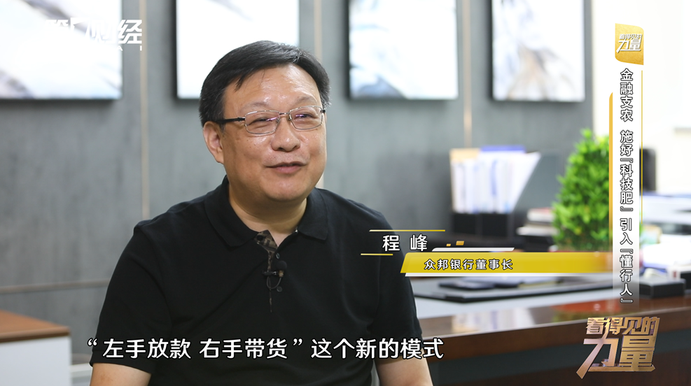 众邦银行董事长程峰:我们也在积极探索,“左手放款、右手带货”这个新的模式,帮助涉农客户一端解决产品销售的问题,另一端解决资金短缺的问题。
