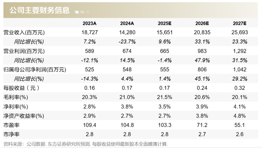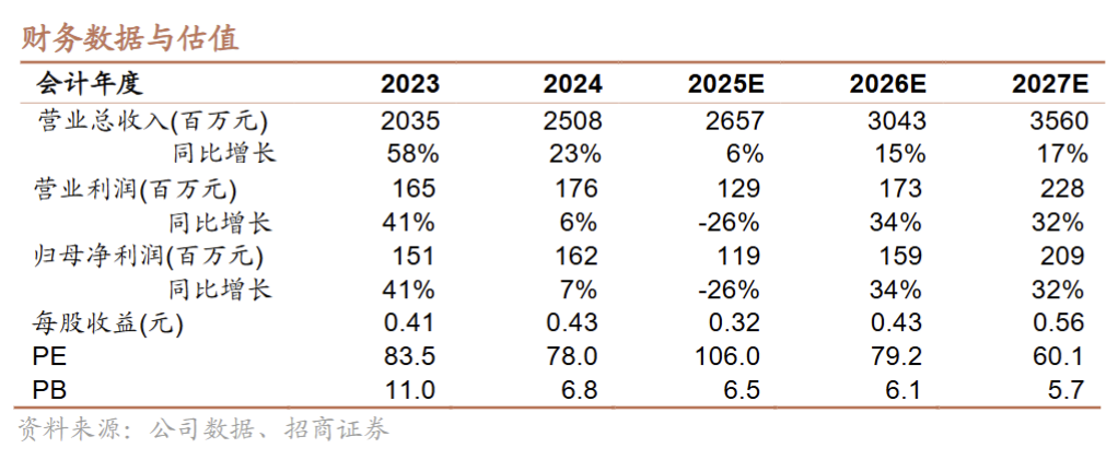 上大股份(301522.SZ)深耕于高返回比再生高温合金制备和关键战略材料进口替代,考虑到高温及高性能合金未来潜力,预测2025-2027年公司收入分别为26.57亿、30.43亿和35.60亿元,对应的归母净利润分别为1.19亿元、1.59亿元与2.09亿元,对应估值106.0、79.2与60.1倍。